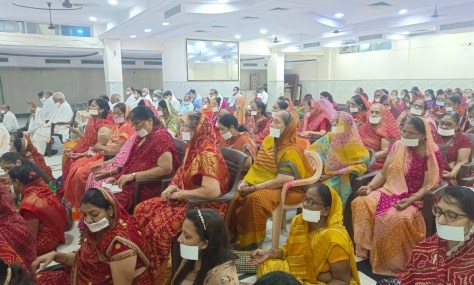 दिनांक 04-08-2024 रविवार को युगप्रधान आचार्यश्री महाश्रमणजी की आज्ञानूवर्तिनी शिष्या साध्वी श्री लब्धिप्रभा जी* ठाणा-3. के पावन सानिध्य में भक्तामर स्तोत्र अनुष्ठान का आयोजन तेरापंथ भवन पश्चिम विहार में हुआ l अनुष्ठान में लगभग 40 दम्पति और 40-45 एकल मिलाकर करीब 125 सदस्यों की उपस्थिति रहीl